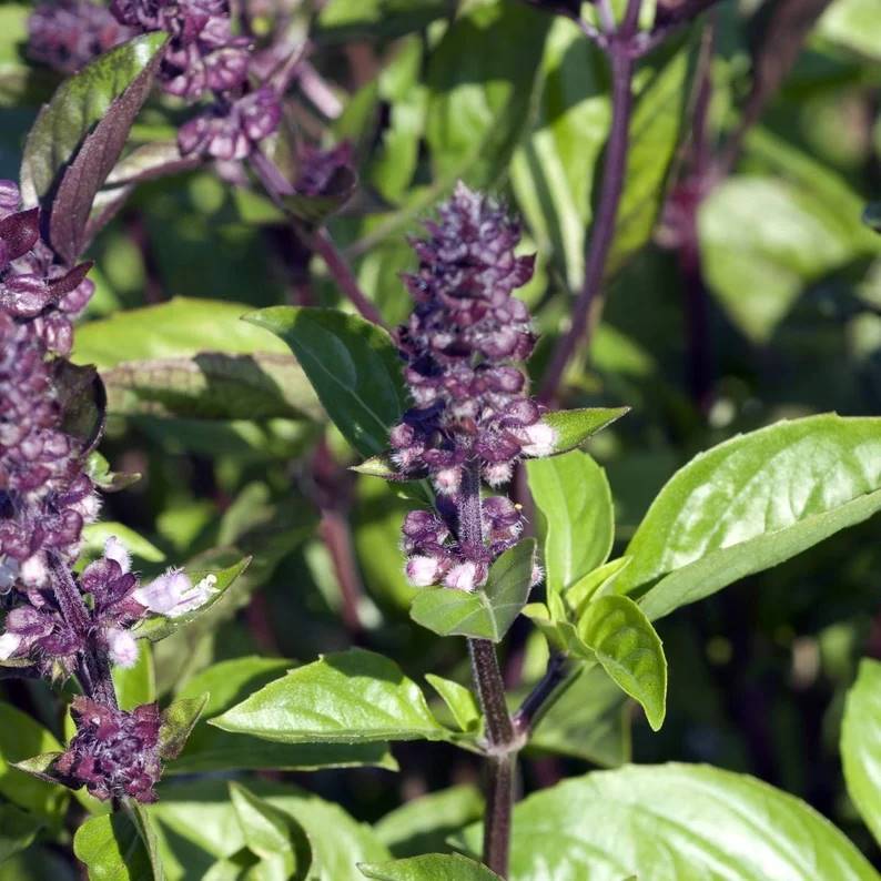 Au jardin, c’est un basilic plutôt facile, moins sensible à la pourriture du collet que le grand vert génois par ex. Ressemblant à un basilic Thaï, ses tiges deviennent pourpres en bout, ainsi que sa floraison, ce qui en fait un basilic assez esthétique.